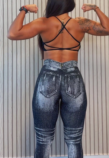 ZASUWA Female Deep V Back Denim Scrunch Bum Leggings