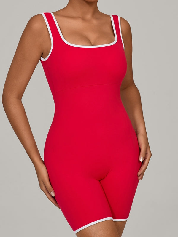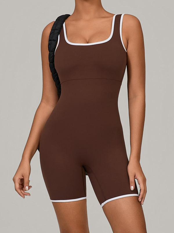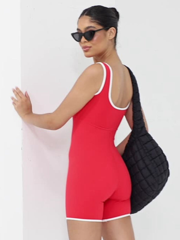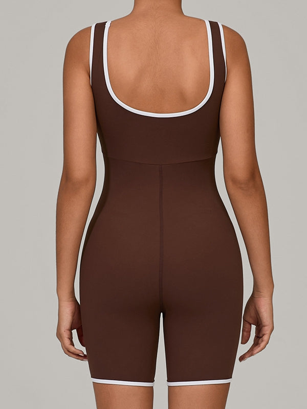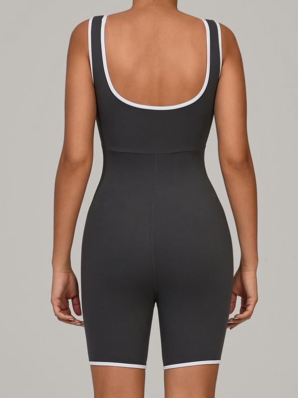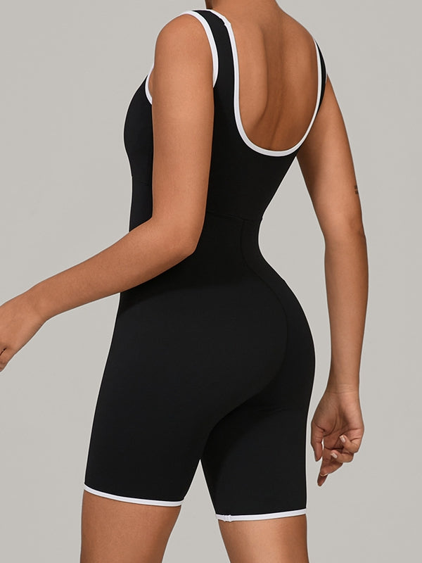 ZASUWA Female U Collar Contrast Color Stripes Backless Romper