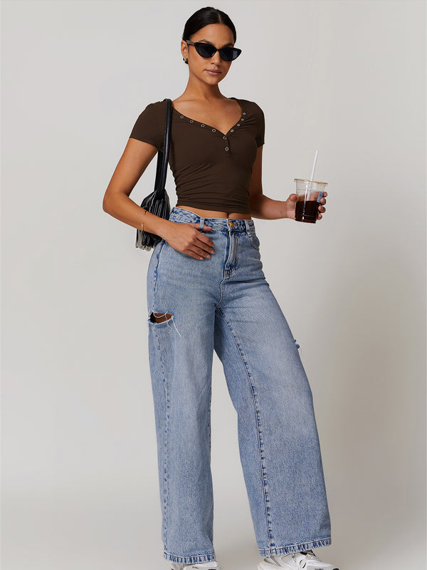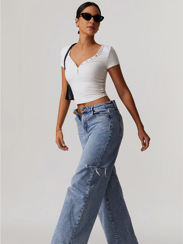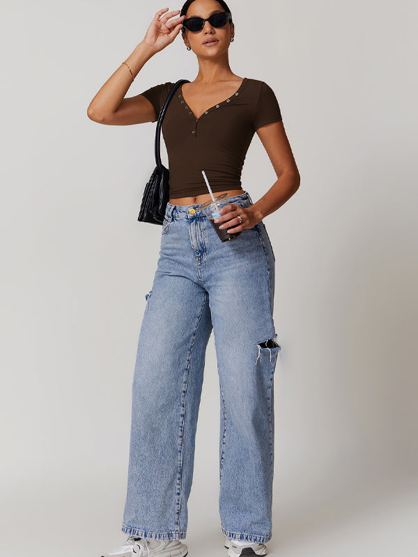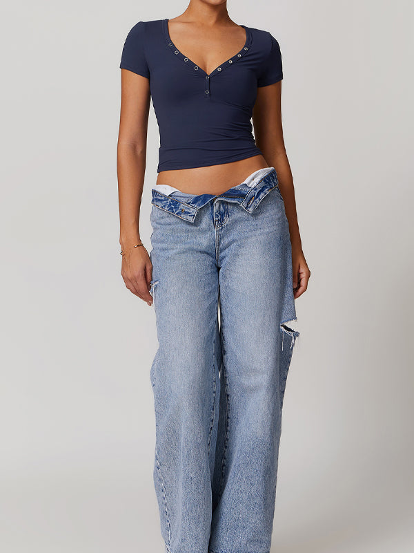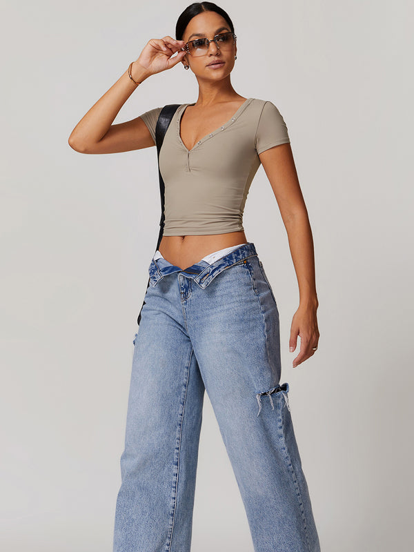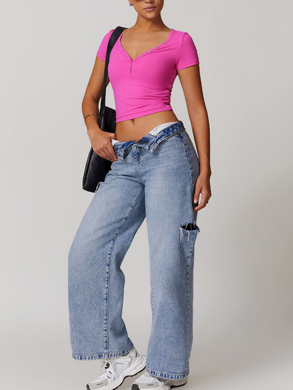 ZASUWA Female V-neck Quick Dry Buttons Yoga Short Sleeves