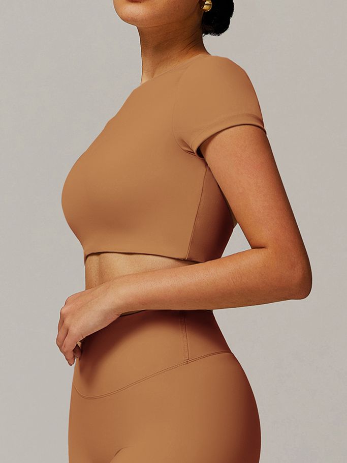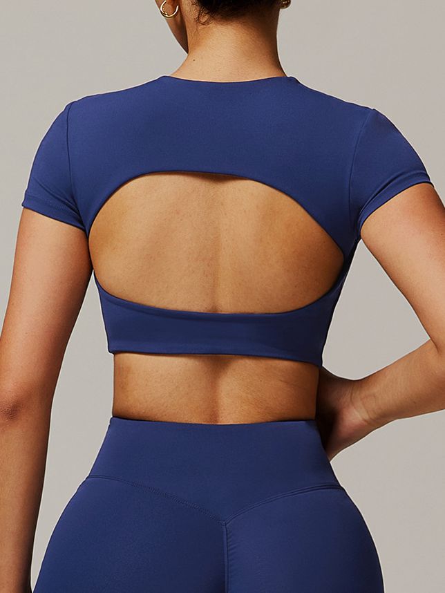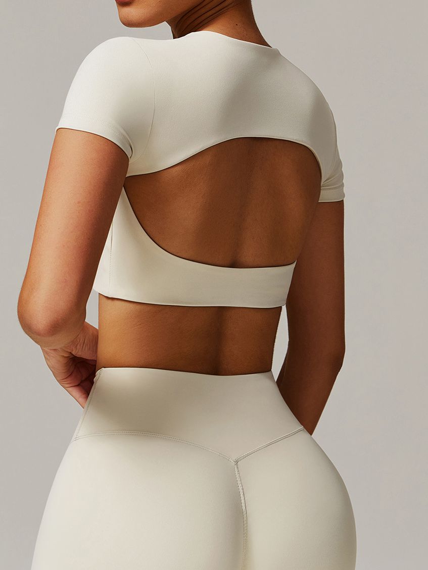 ZASUWA Female Solid Color Backless with Pads Cropped Short Sleeves