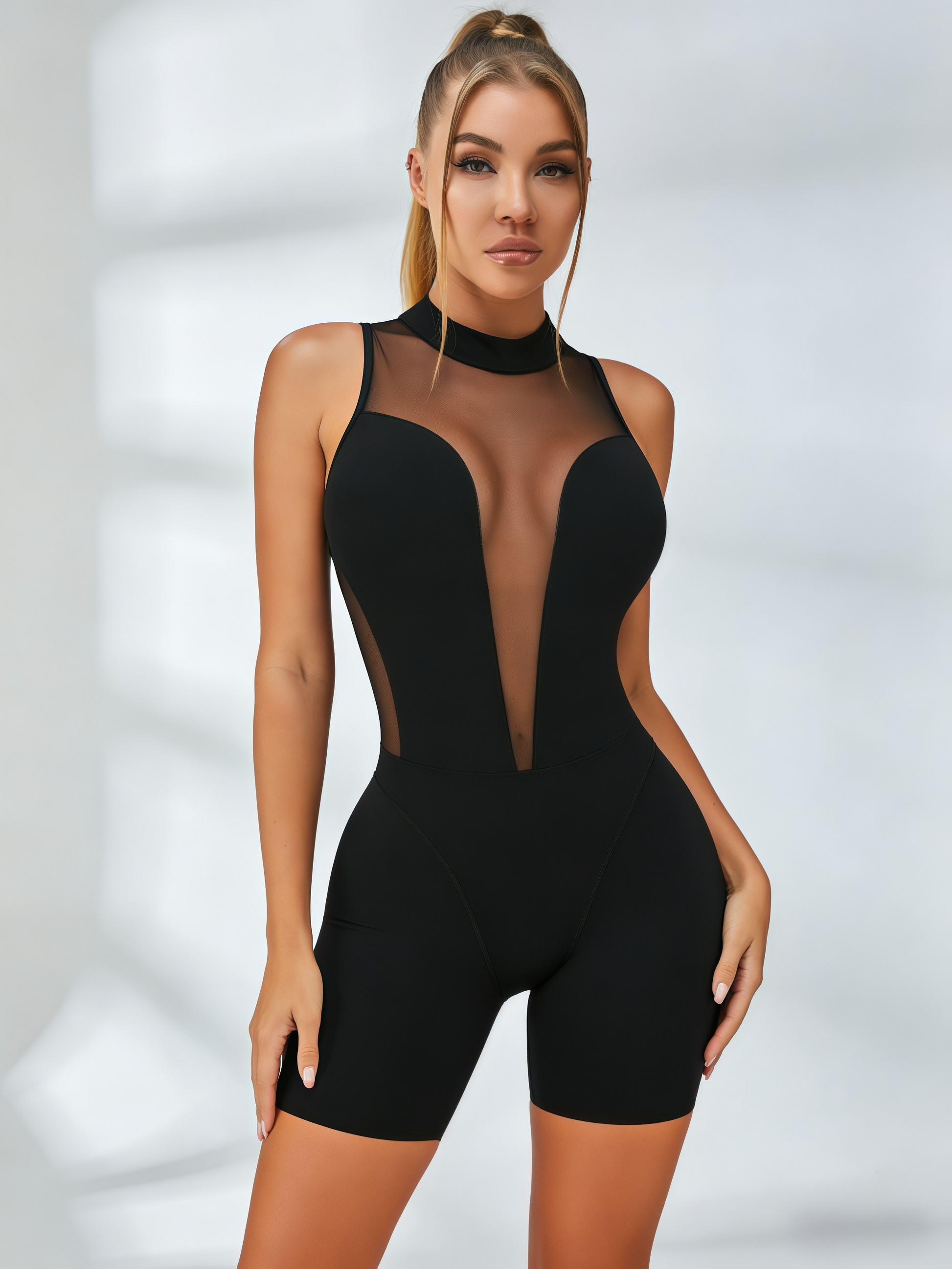 🖤ZASUWA Female Mesh Deep V Back Short Romper