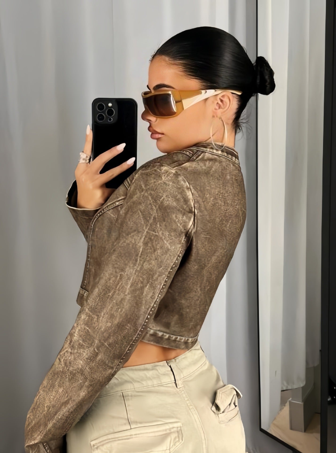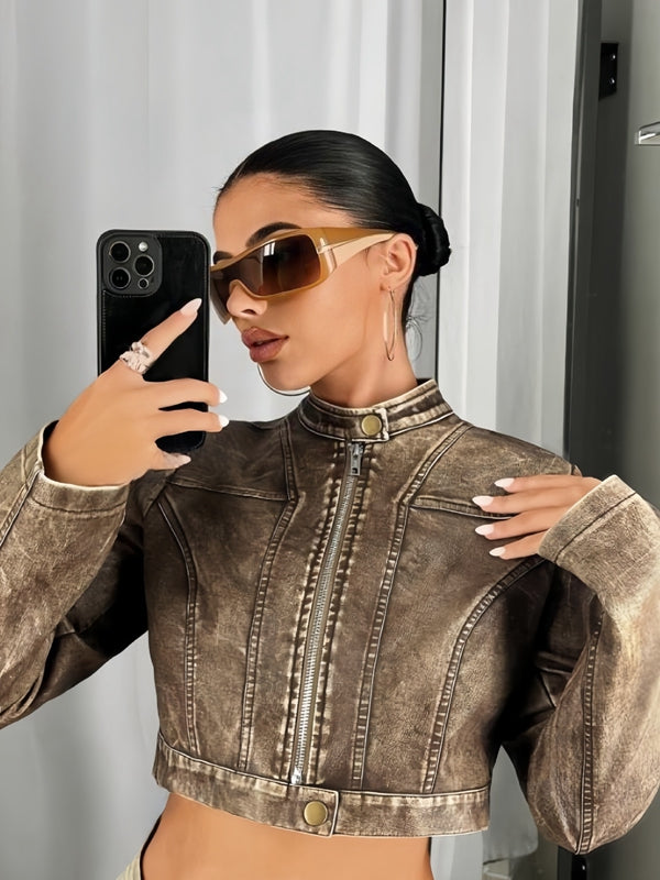 ZASUWA Female Zipper PU Stand Up Collar Jackets
