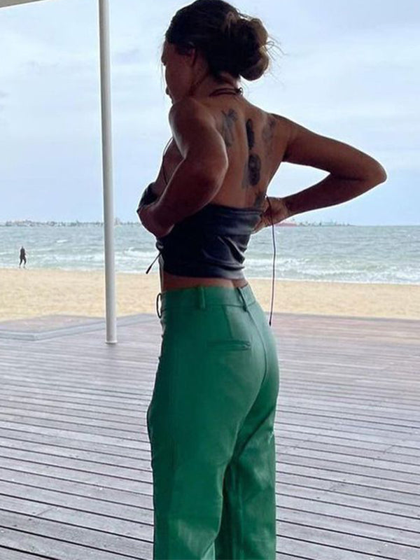 ZASUWA Female Sexy Faux Leather Backless Lace-up Sports Bras