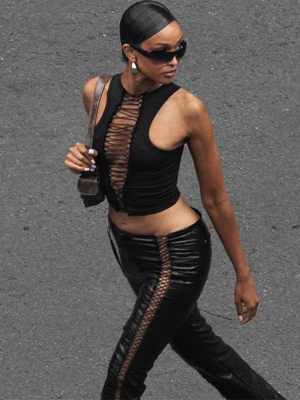ZASUWA Female Sexy Hollow Out Drawstring Tank