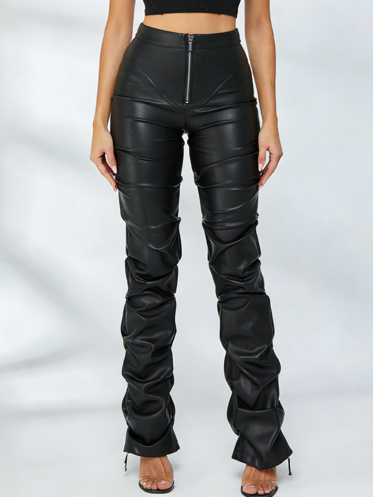 ZASUWA Damen Leggings aus Kunstleder mit Falten und Reißverschluss