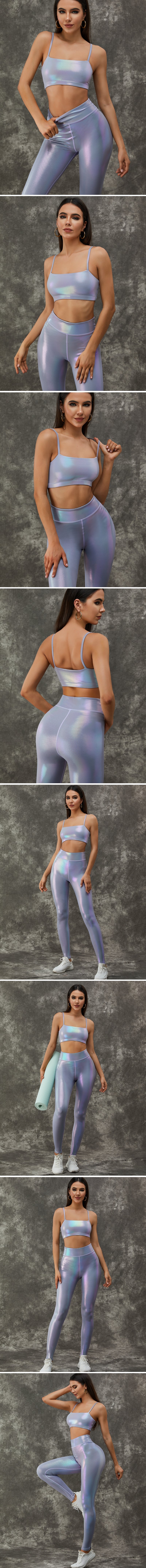 ZASWUA Damen Yoga-Trainingsanzug aus glänzendem PU-Kunstleder mit bronzierendem Perlenmuster