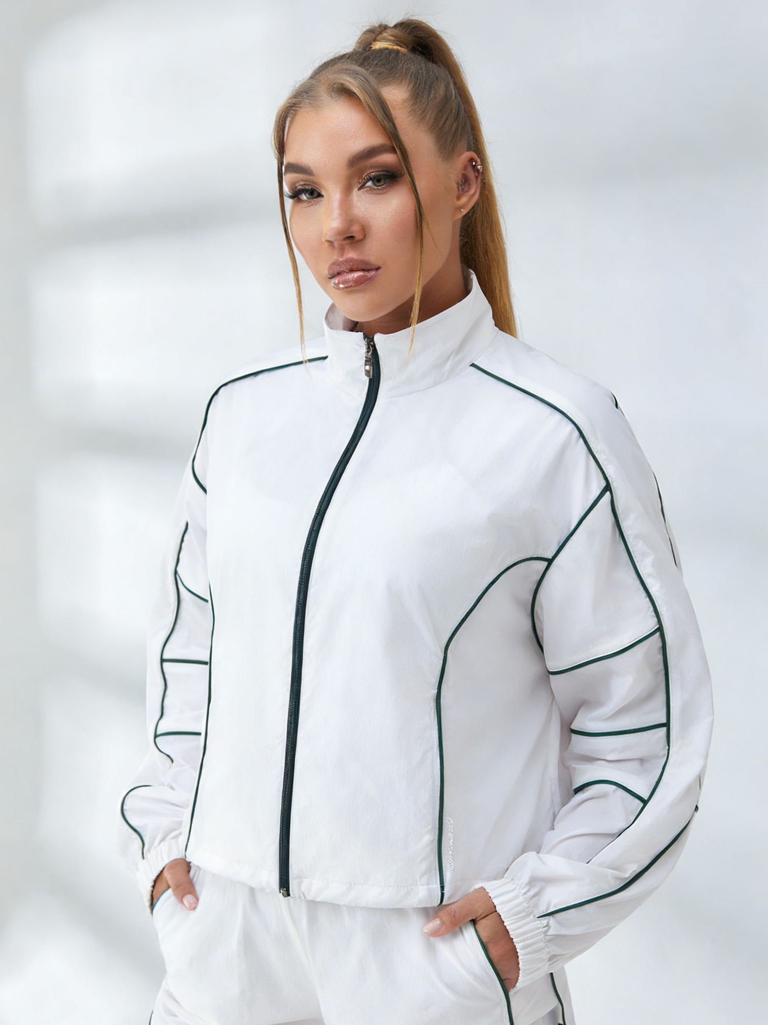 ZASUWA Female Contrast Color Zipper Pocket Casual Loose Quick Dry Jackets