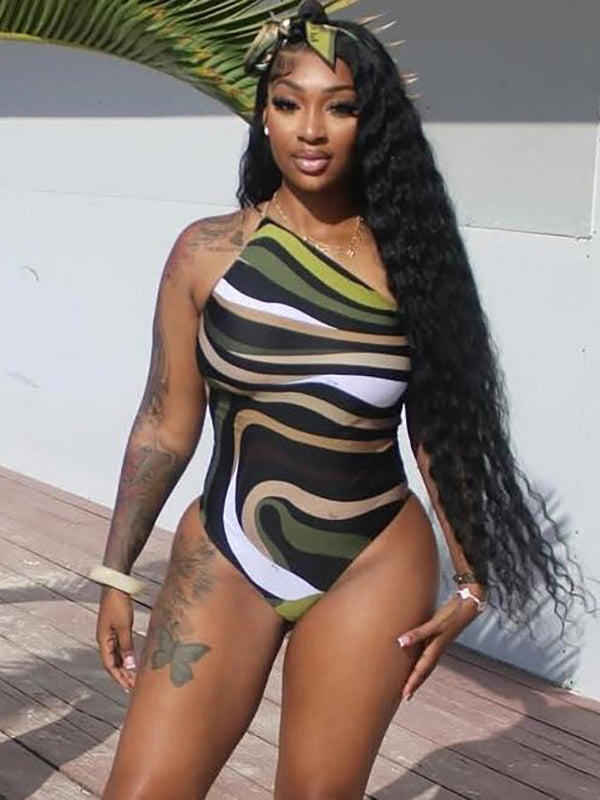 ZASUWA Female Camouflage Cross Backless Elastic Tight One Piece