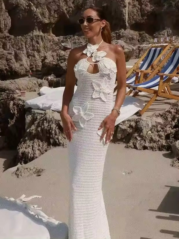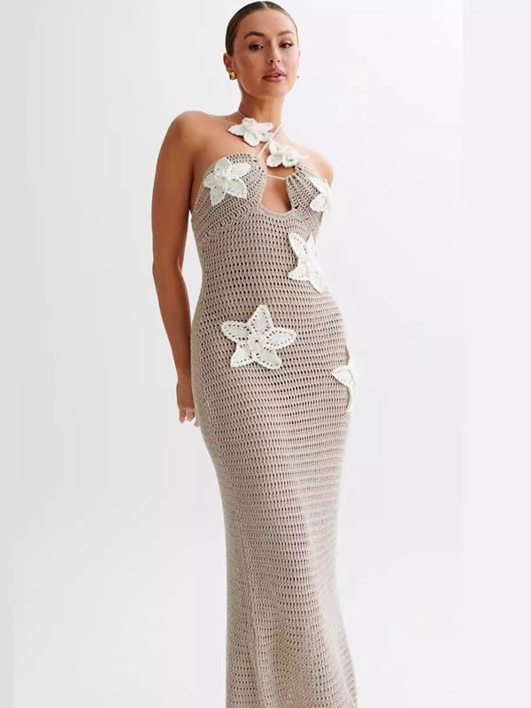 ZASUWA Female Sexy Fishnet Flower Without Bikini Set Cover-up Dress