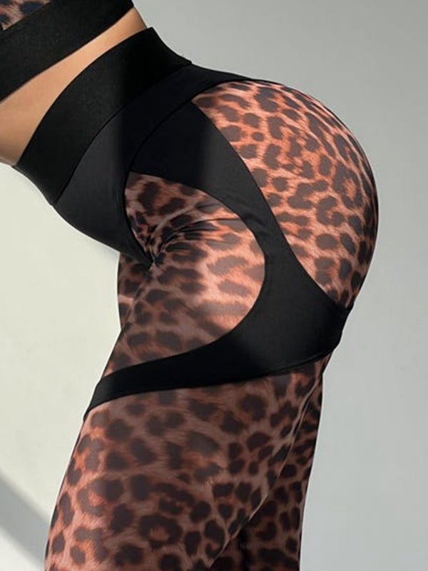 🖤ZASUWA Female Leopard Print Push Up Mesh Leggings