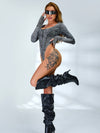 🖤ZASUWA Female Zipper Denim Thumbhole Bodysuit