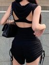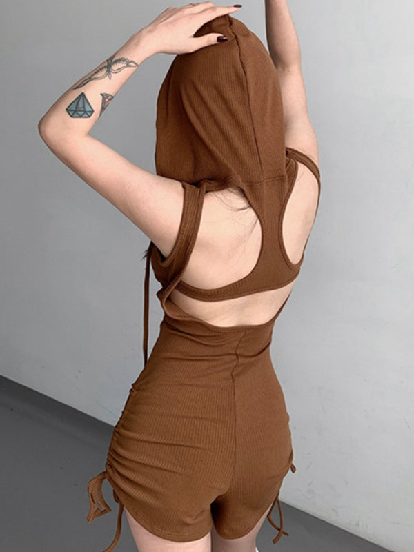 ZASUWA Female Hollow Out Drawstring Hooded Romper