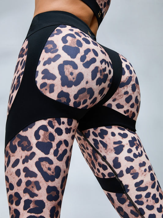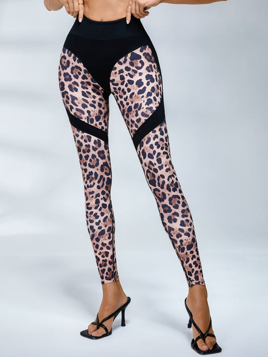 ZASUWA Female Sexy Leopard Print Semi-trasparent Mesh Flare Leggings