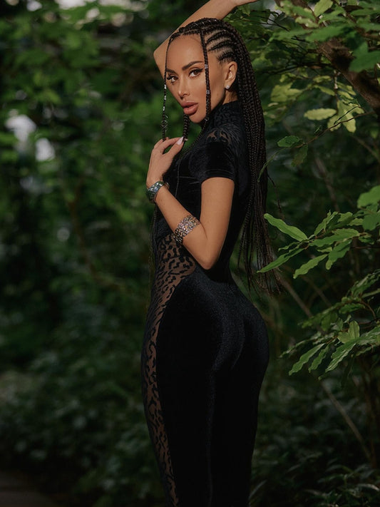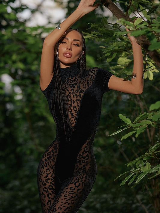 ZASUWA Female Sexy Leopard Print Mesh Jumpsuit