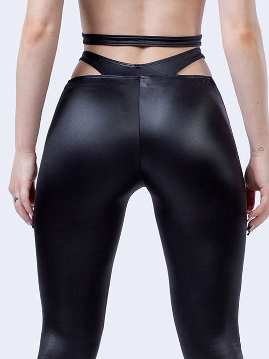 ZASUWA Female Sexy Faux Leather Flare Leggings
