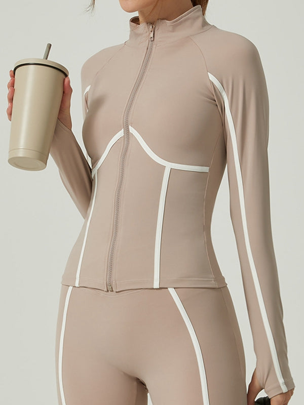 ZASUWA Female Contrast Color Stripes Zipper Jacket