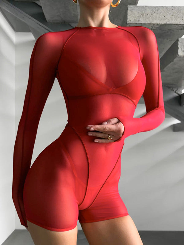 ZASUWA Female Cross Back Sexy Mesh Serpentine Print Romper