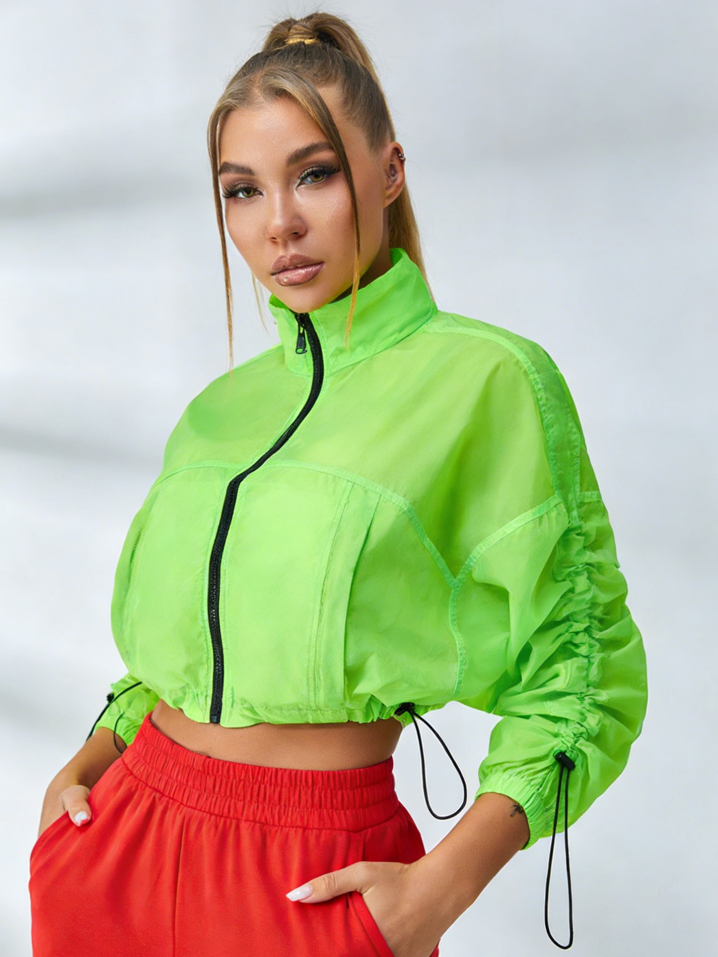 ZASUWA Female Anti-UV Drawstring Zipper Pocket Quick-dry Cropped Jackets