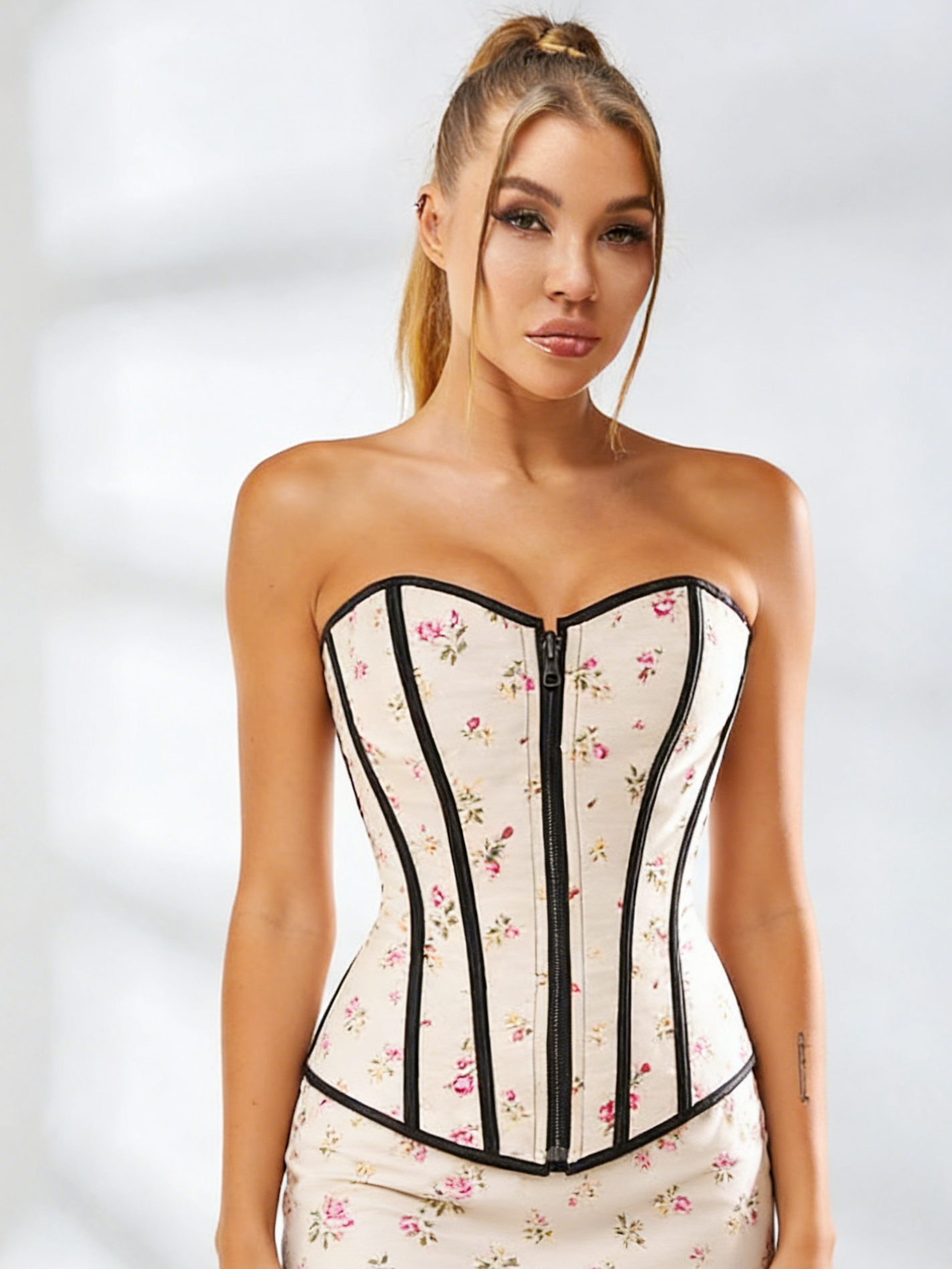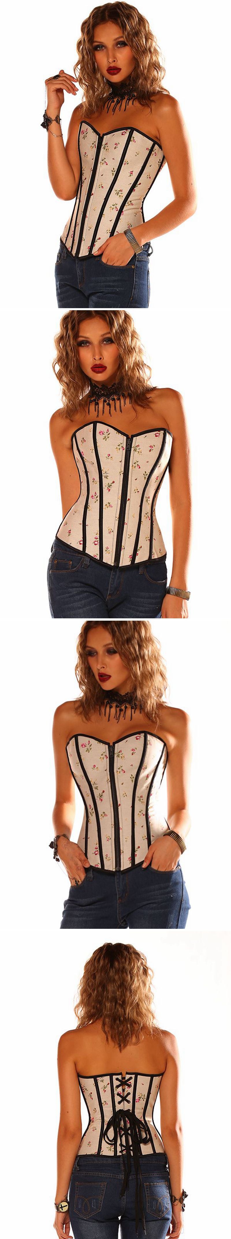 ZASUWA Female Zipper Flower Print Lace-up Shapewear