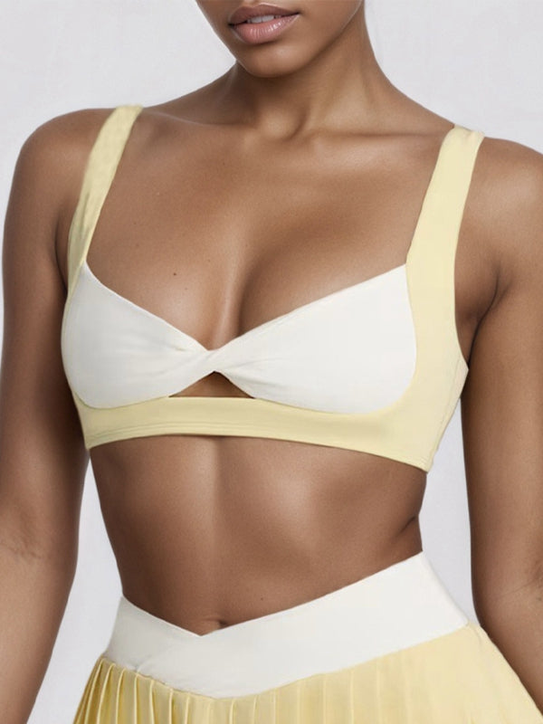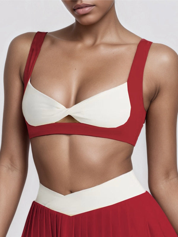 Features: Sexy teenis skirt suit with cutout and contrast color design