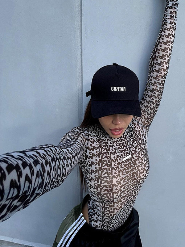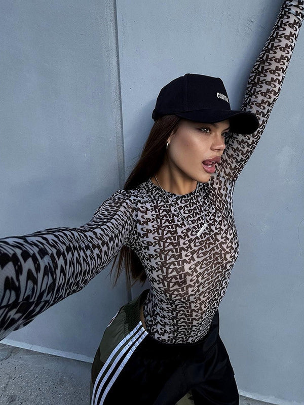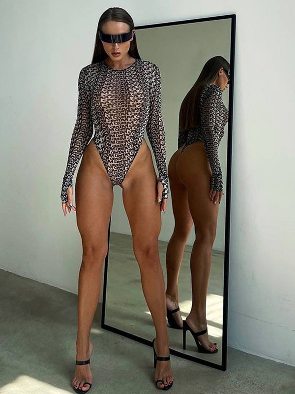 Features: Stylish must have sexy mesh bodysuit with letter print design