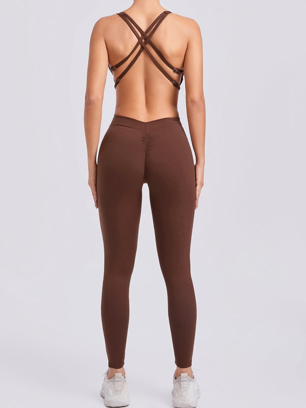 ZASUWA Female Cross Back Scrunch Bum Hollow Out Jumpsuit