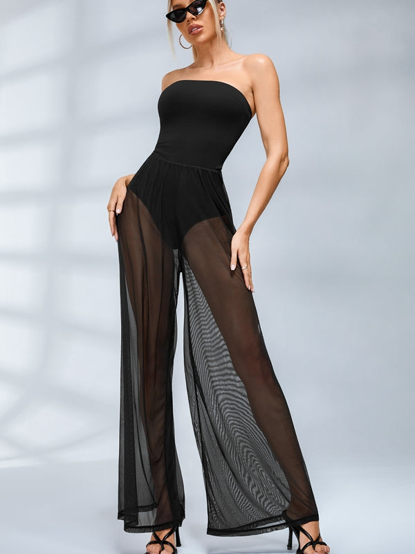 Features:The sexy mesh jumpsuit with flare design
