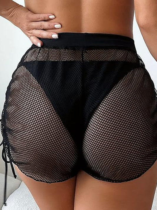 ZASUWA Female Sexy Fishnet Drawstring Quick-dry Shorts